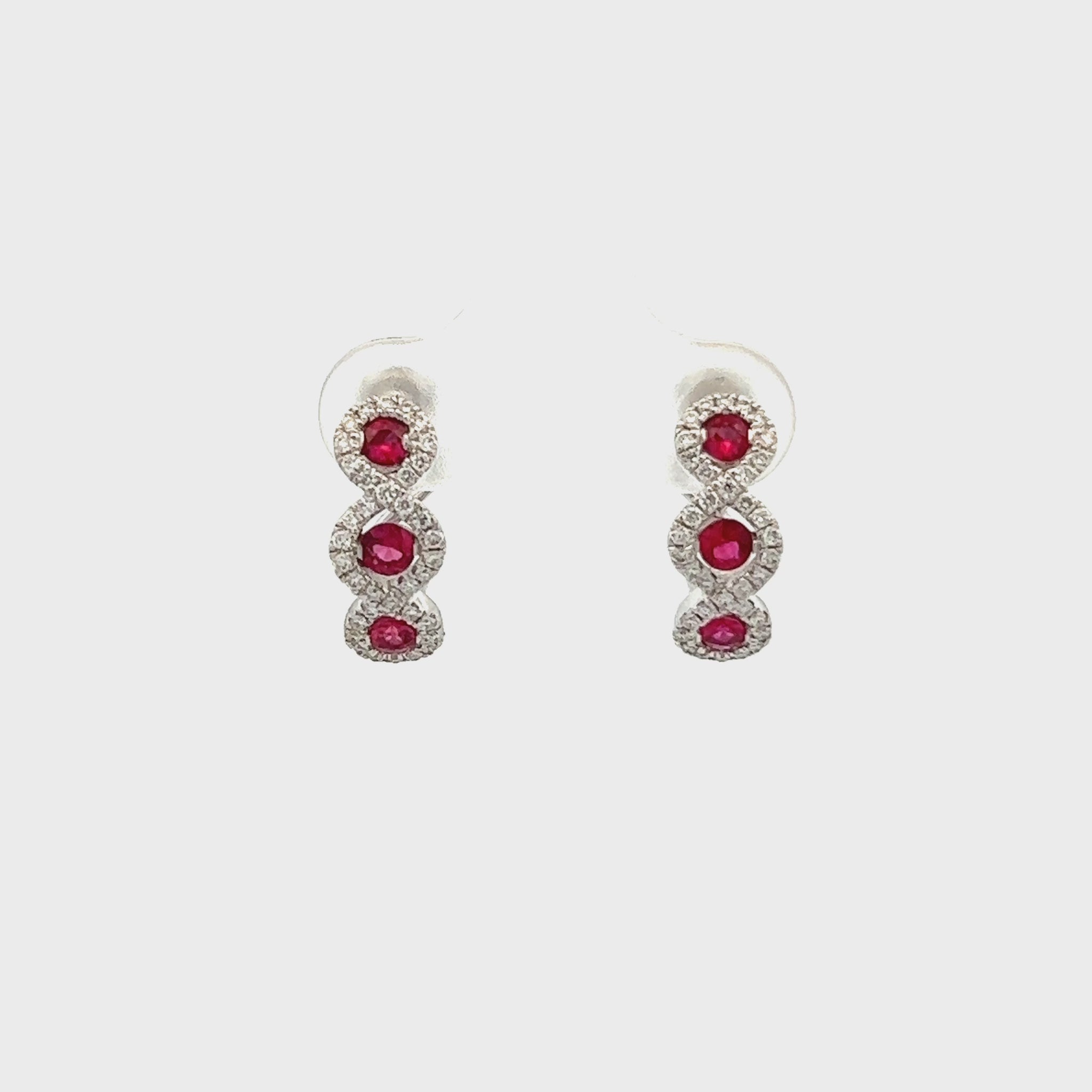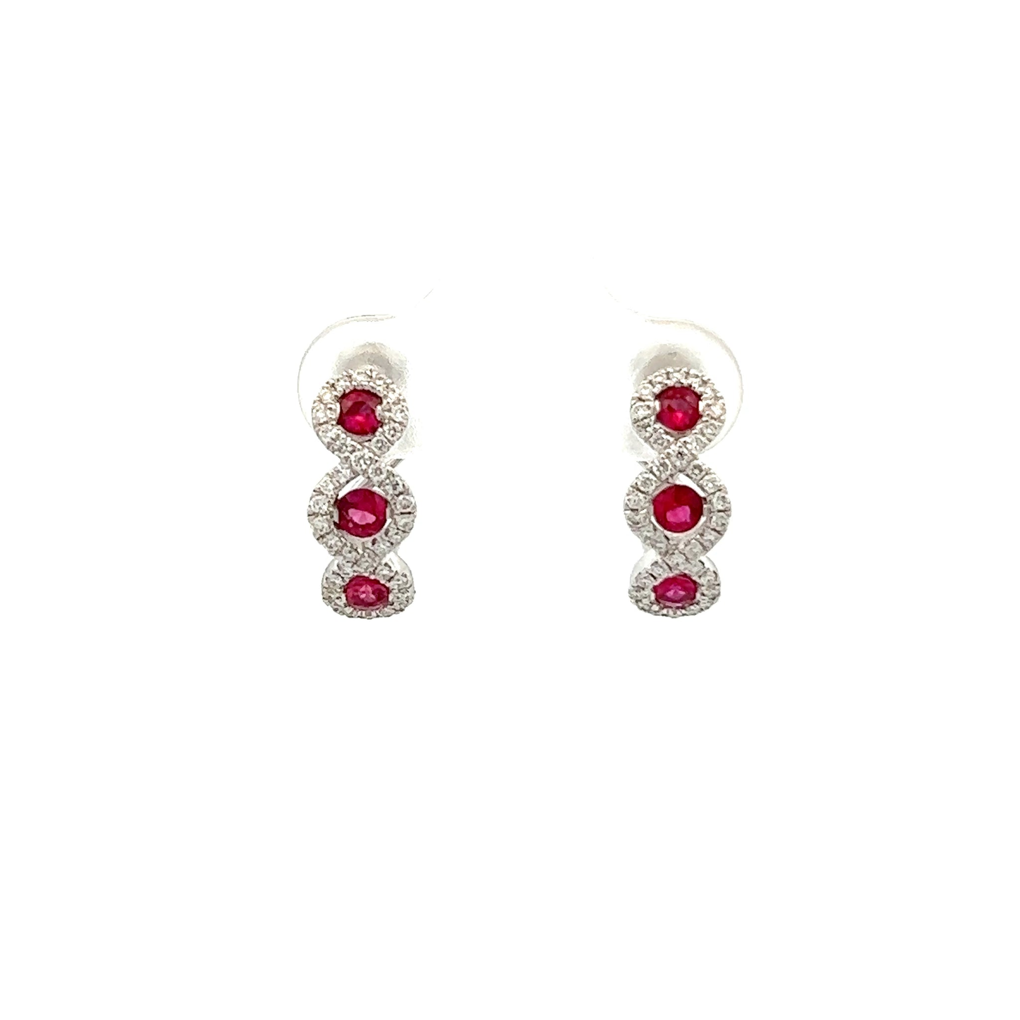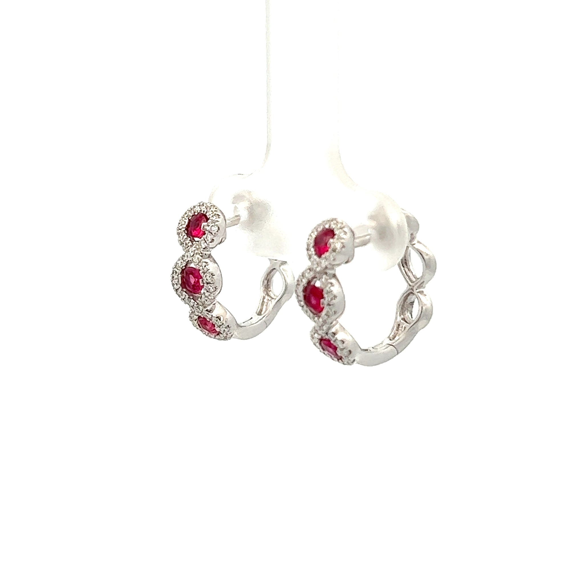18k White Gold Ruby Huggie Earrings with Diamonds .29ct