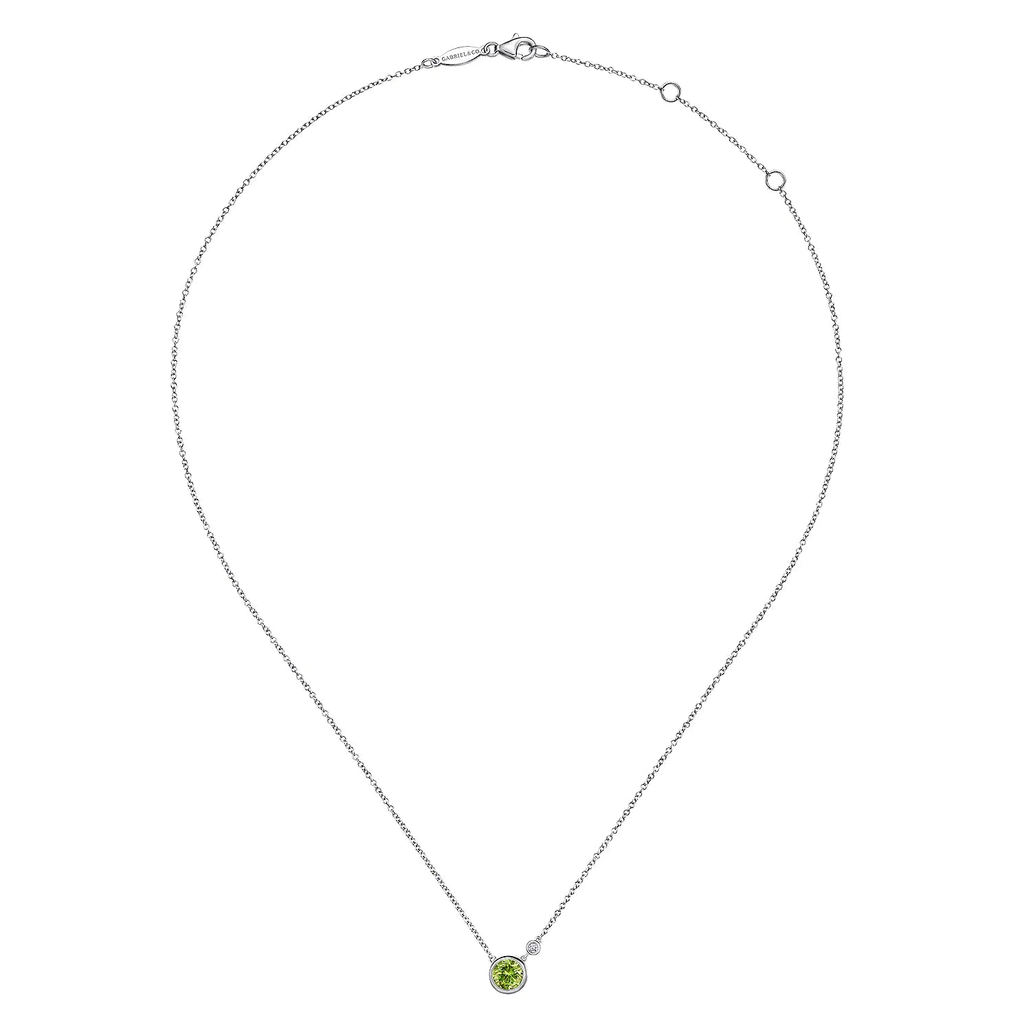 Crafted from polished 925 sterling silver and set on a slim cable chain, this sensational necklace flaunts a bezel set round peridot centerpiece. Sophisticated sparkle is added by a petite 0.01ct round accent diamond. This vibrant green birthstone necklace is a meaningful gift for an August birthday.