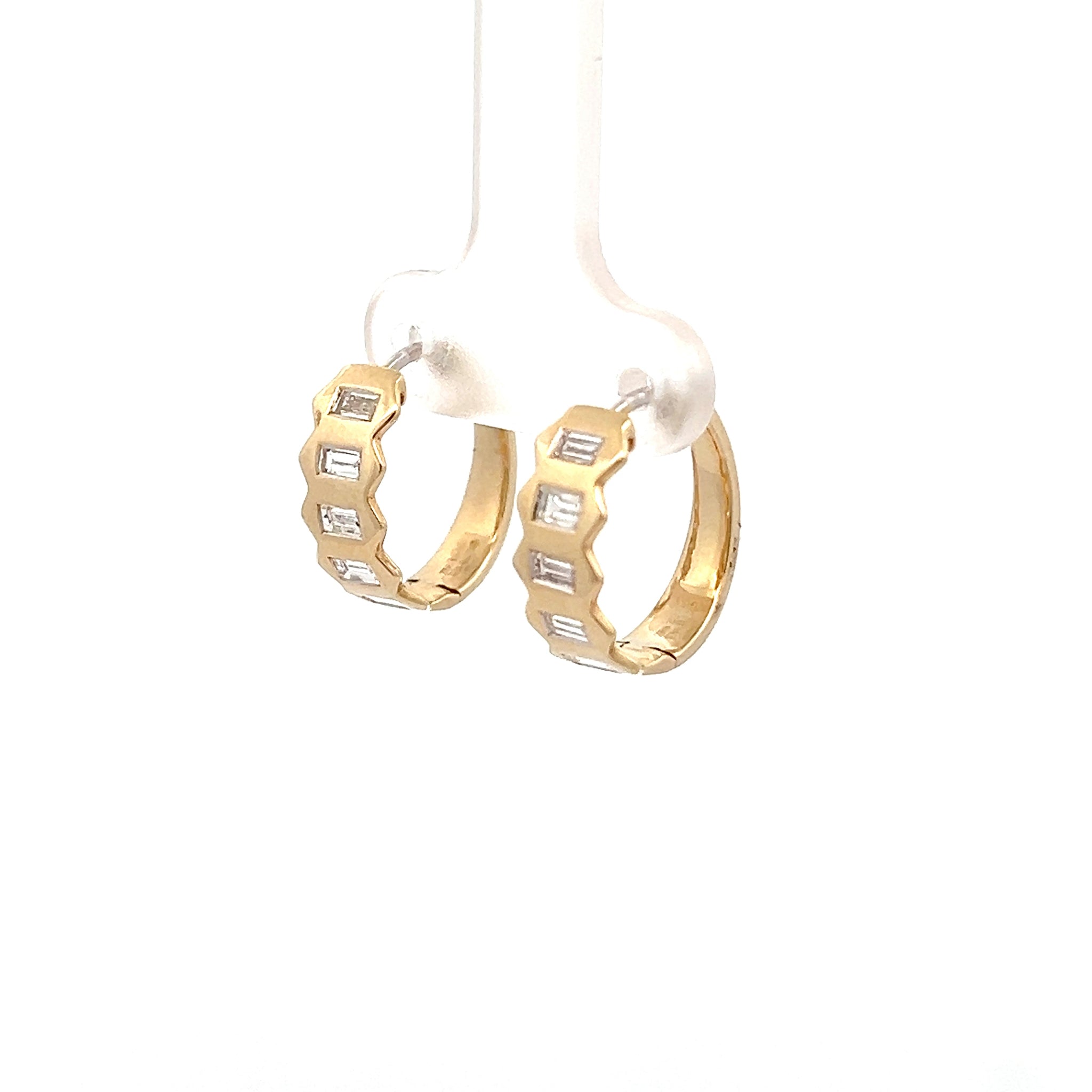 14k Yellow Gold Diamond Geometric Huggie Hoop Earrings .68ct