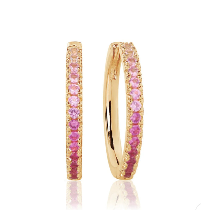 18k Gold Plated Sterling Silver Pink CZ Hoop Earrings