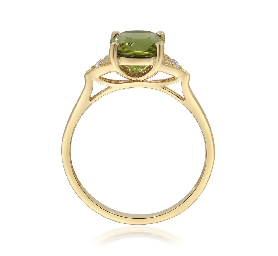 14k Yellow Gold Cushion Cut Peridot Ring with Diamonds .04ct