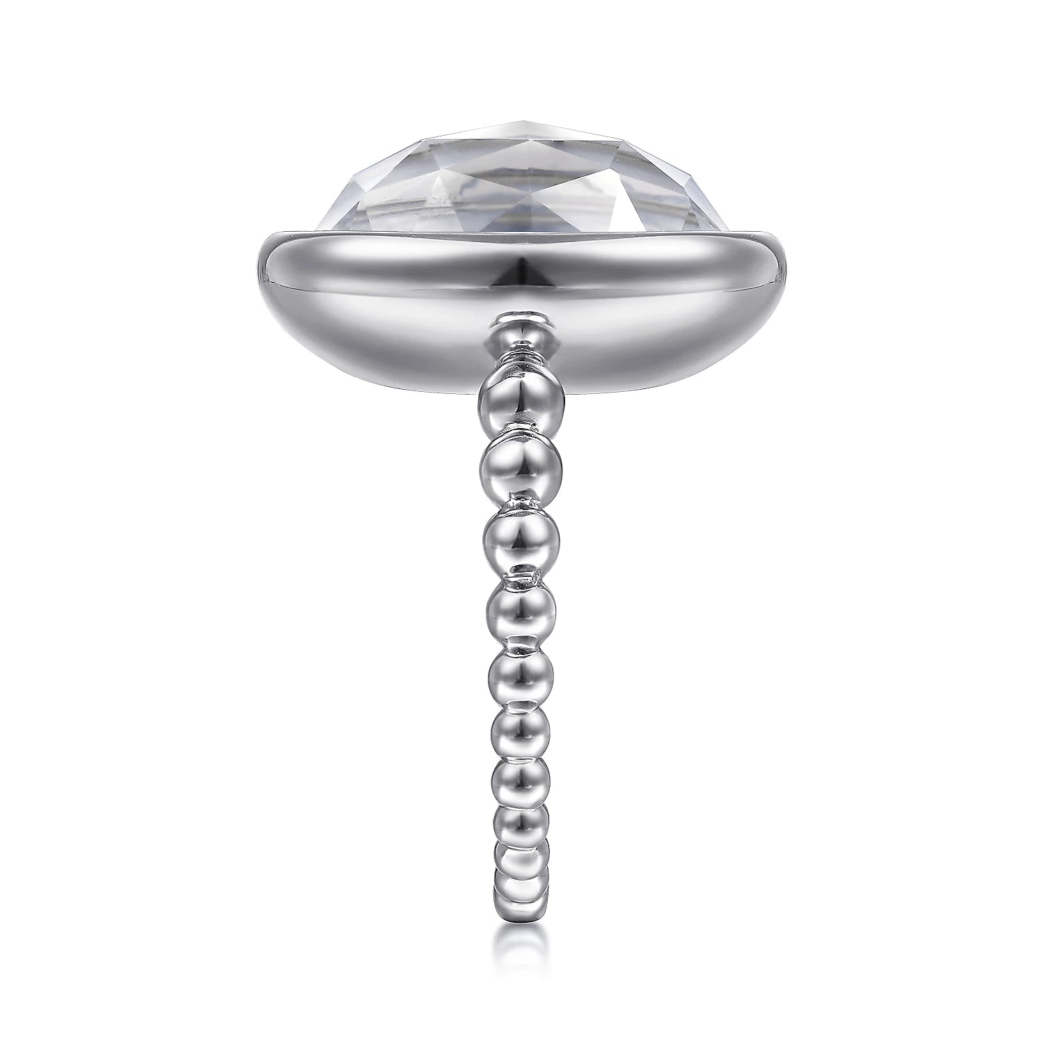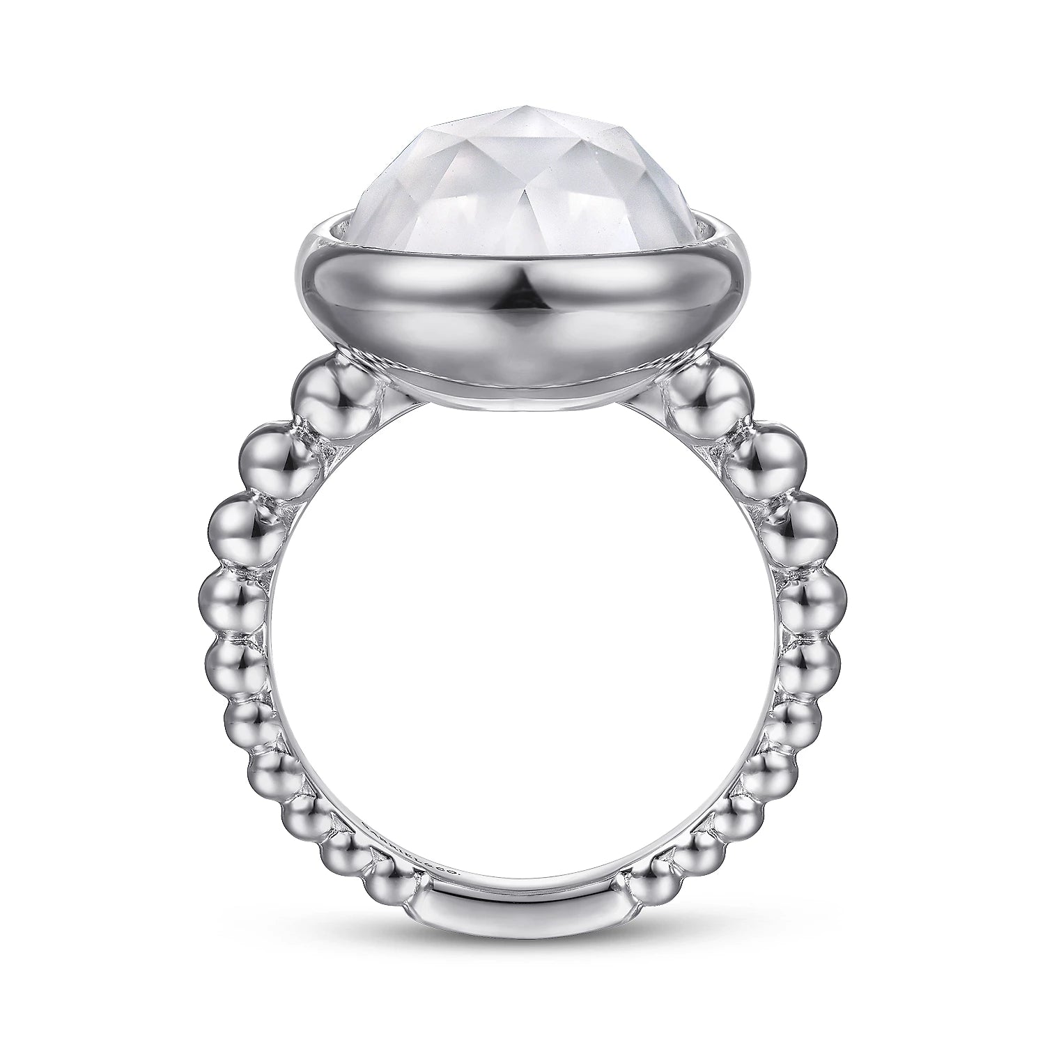 925 Sterling Silver Rock Crystal and White Mother of Pearl Oval Signet Ring