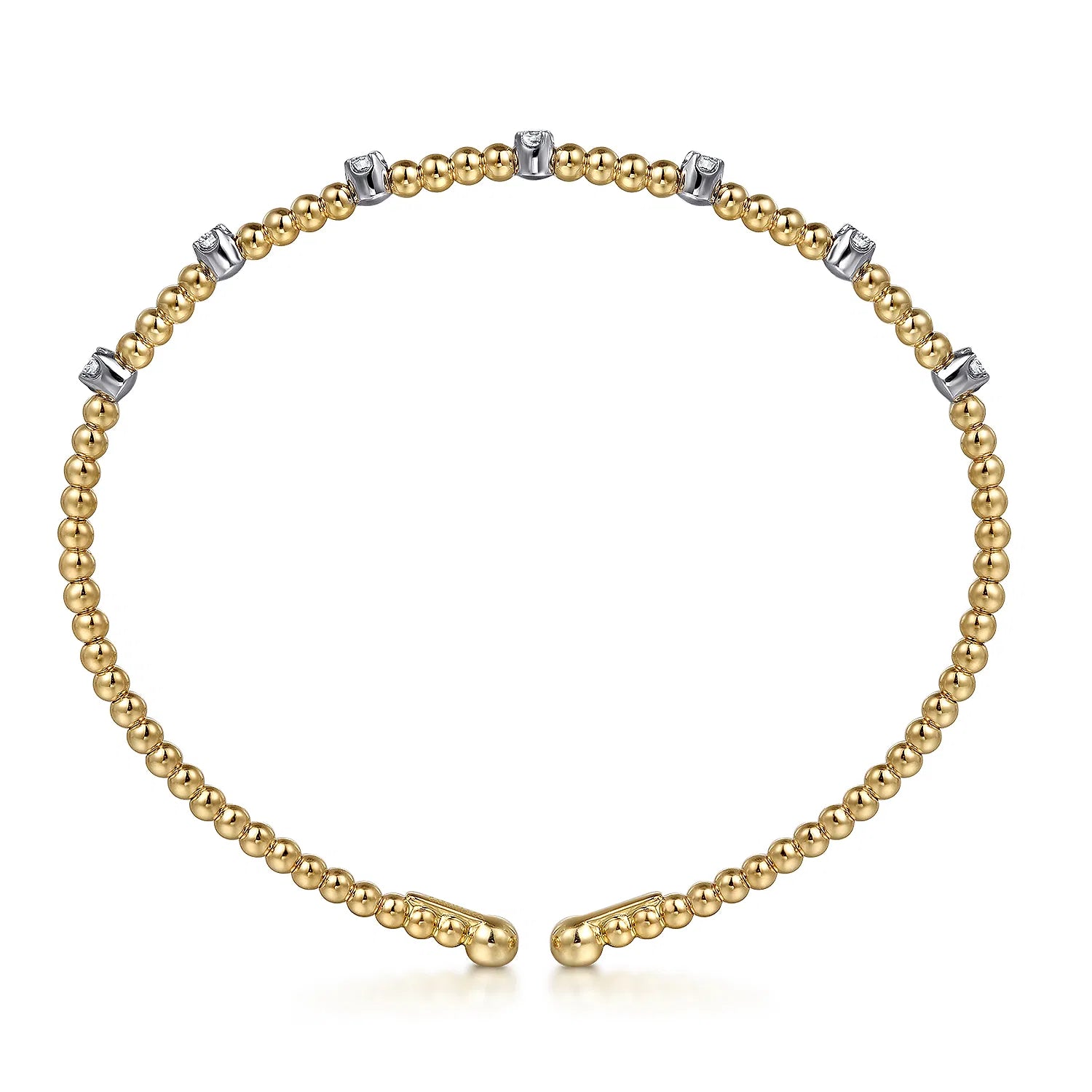 Discover 14K White-Yellow Gold Bujukan Diamond Stations Bangle at Gabriel & Co.! Dive into our stunning 14k Yellow & white Gold Bujukan Bracelets, where modern style meets timeless elegance in every design. .21ct