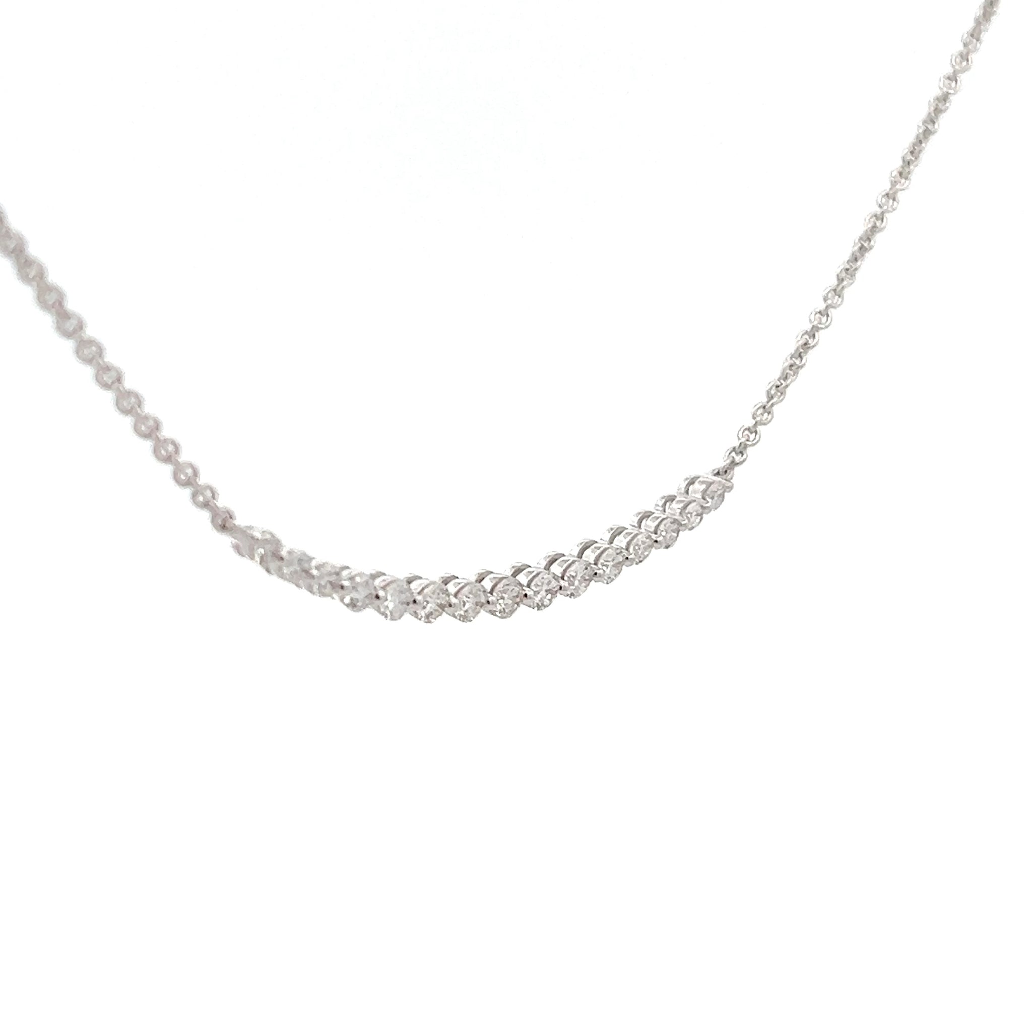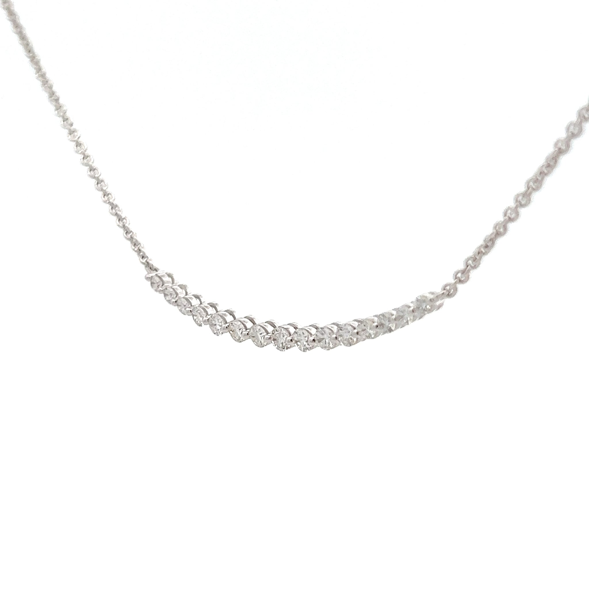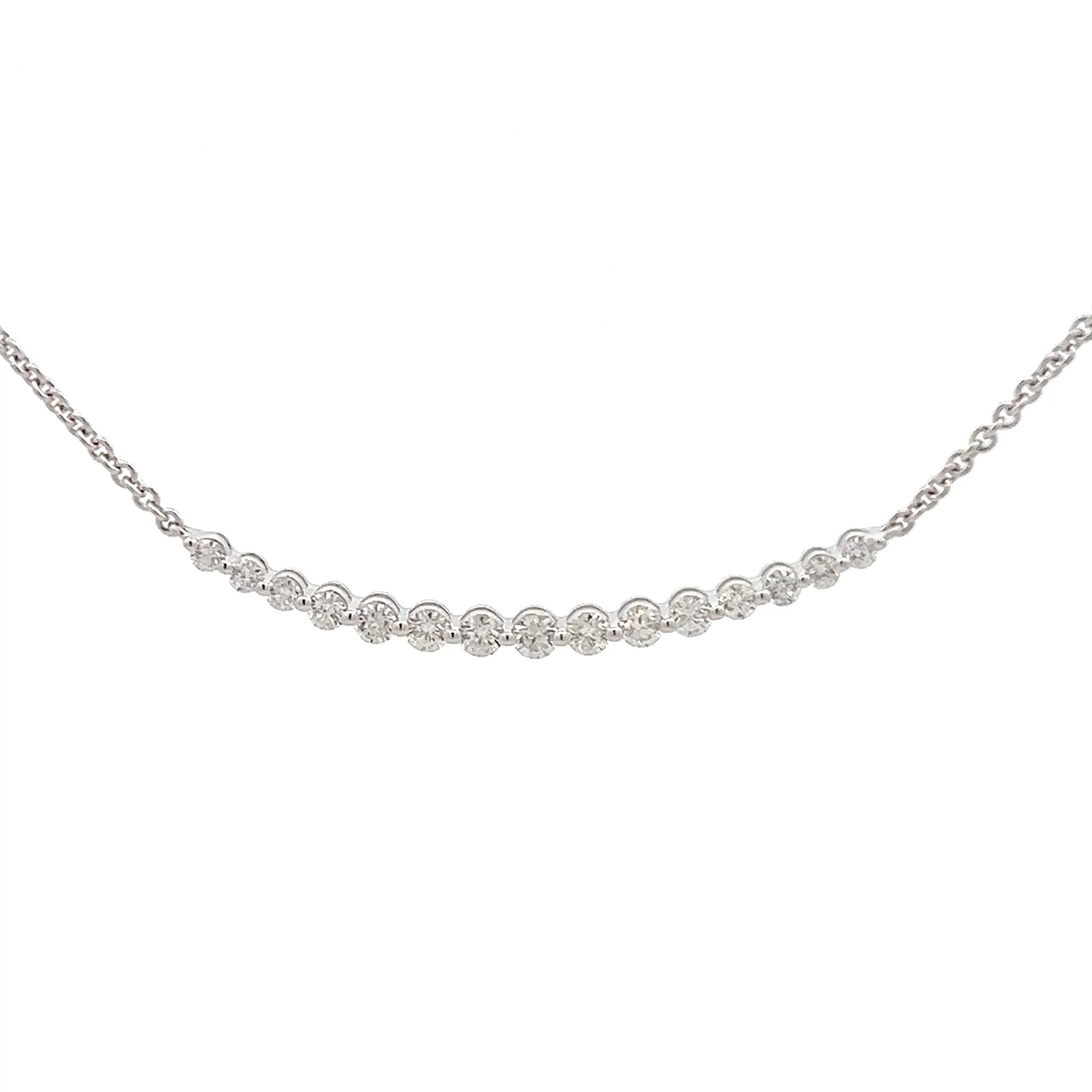 14k White Gold Diamond Curved Bar Necklace .51ct 18”