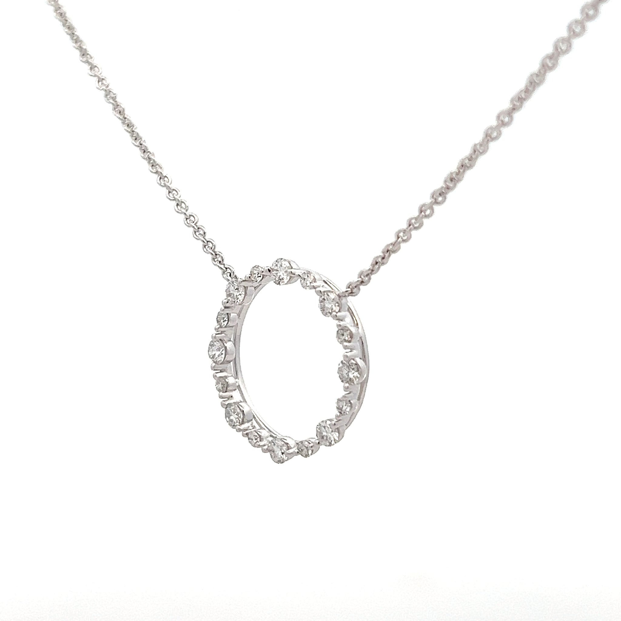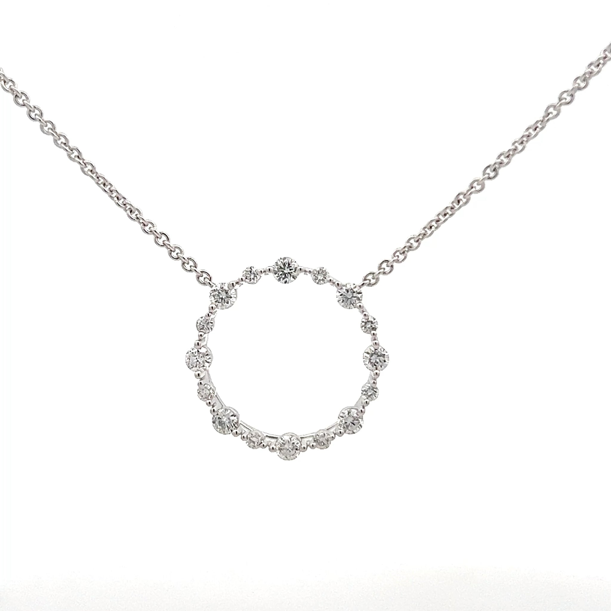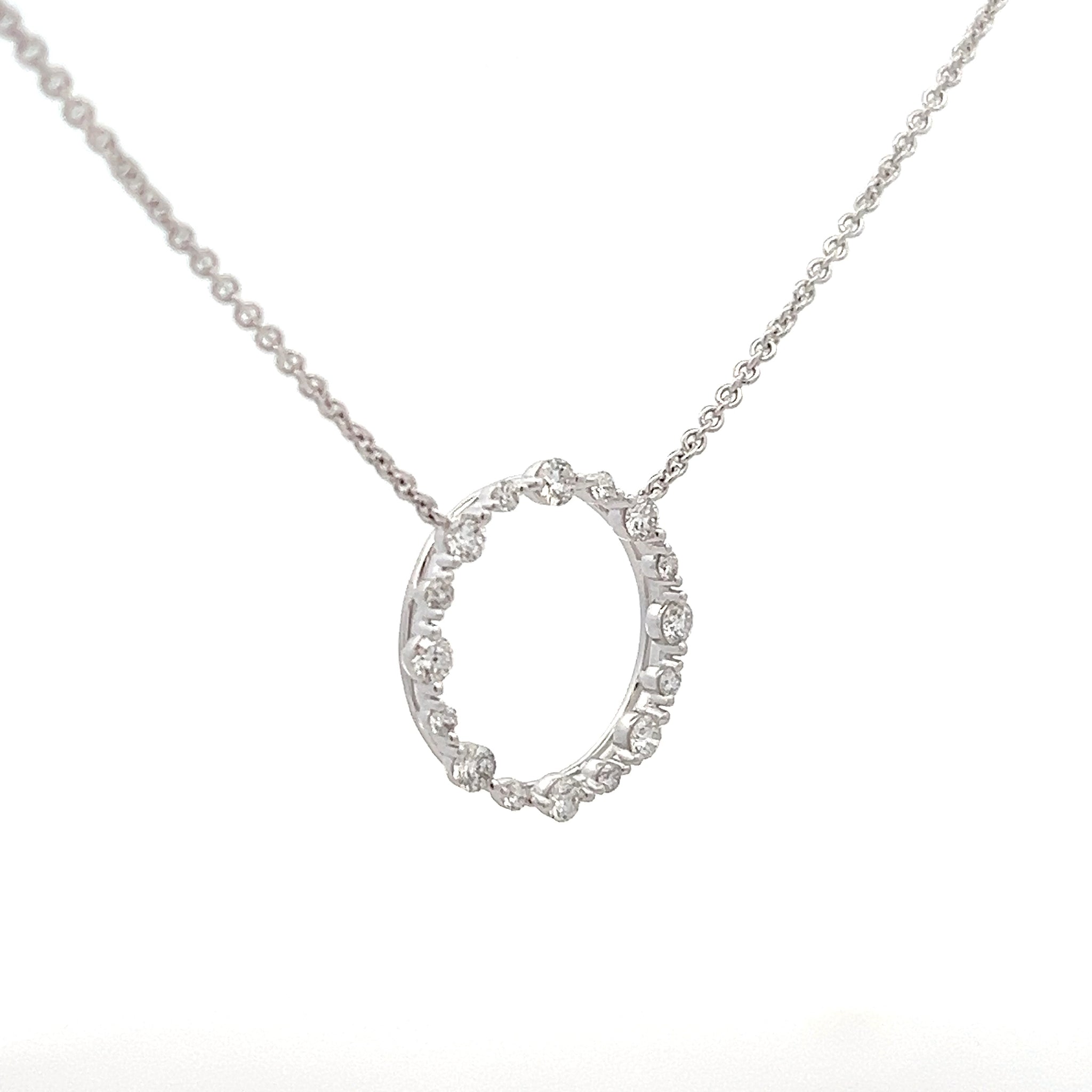14k White Gold Diamond Circle Necklace .53ct 18”