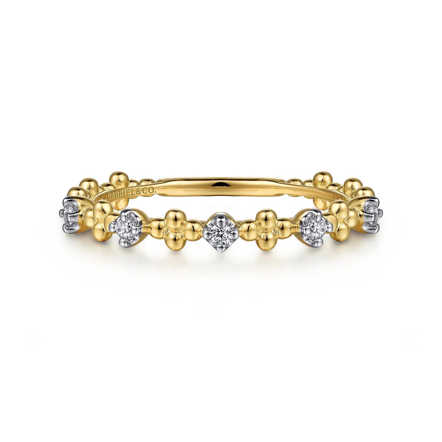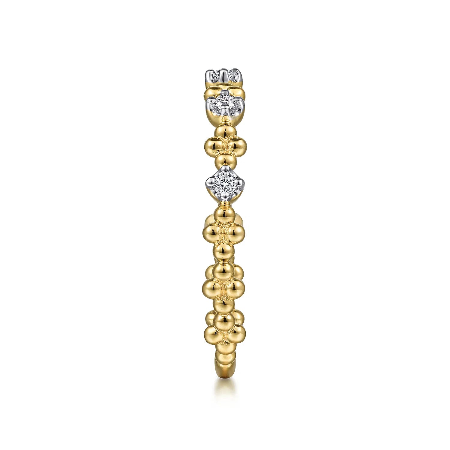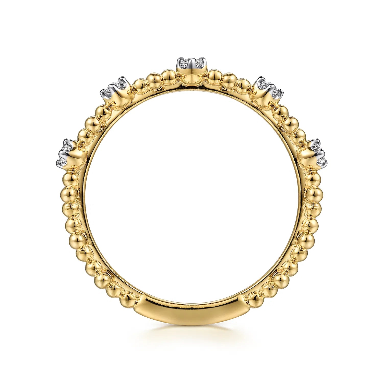 14K Yellow Gold Diamond and Bujukan Bead Station Stackable Ring .08ct