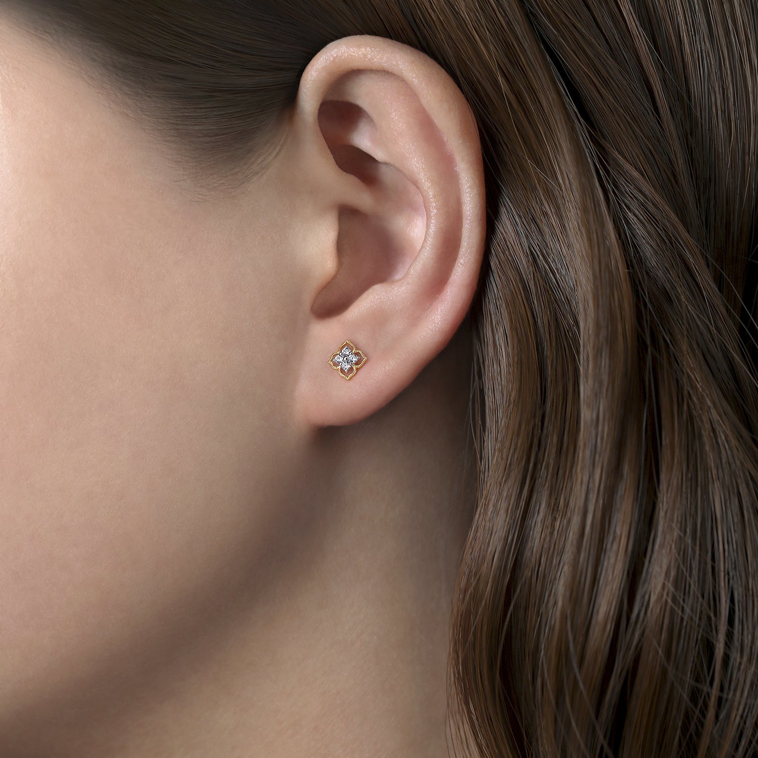 14K Yellow Gold Floral Diamond Stud Earrings .11ct