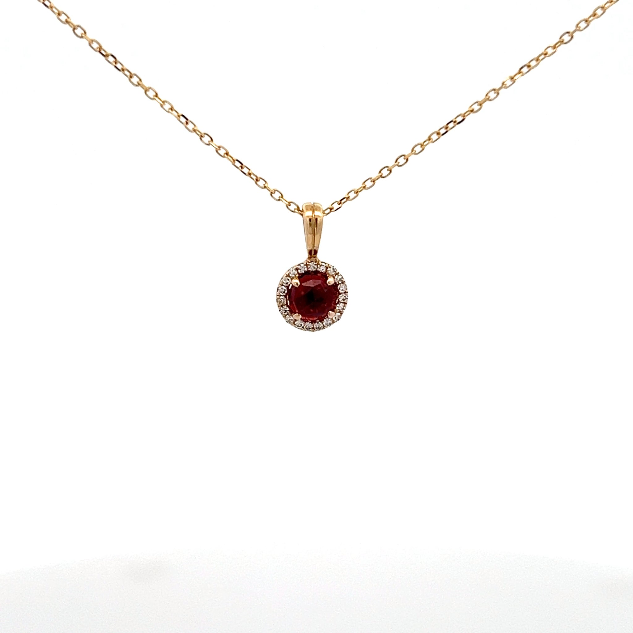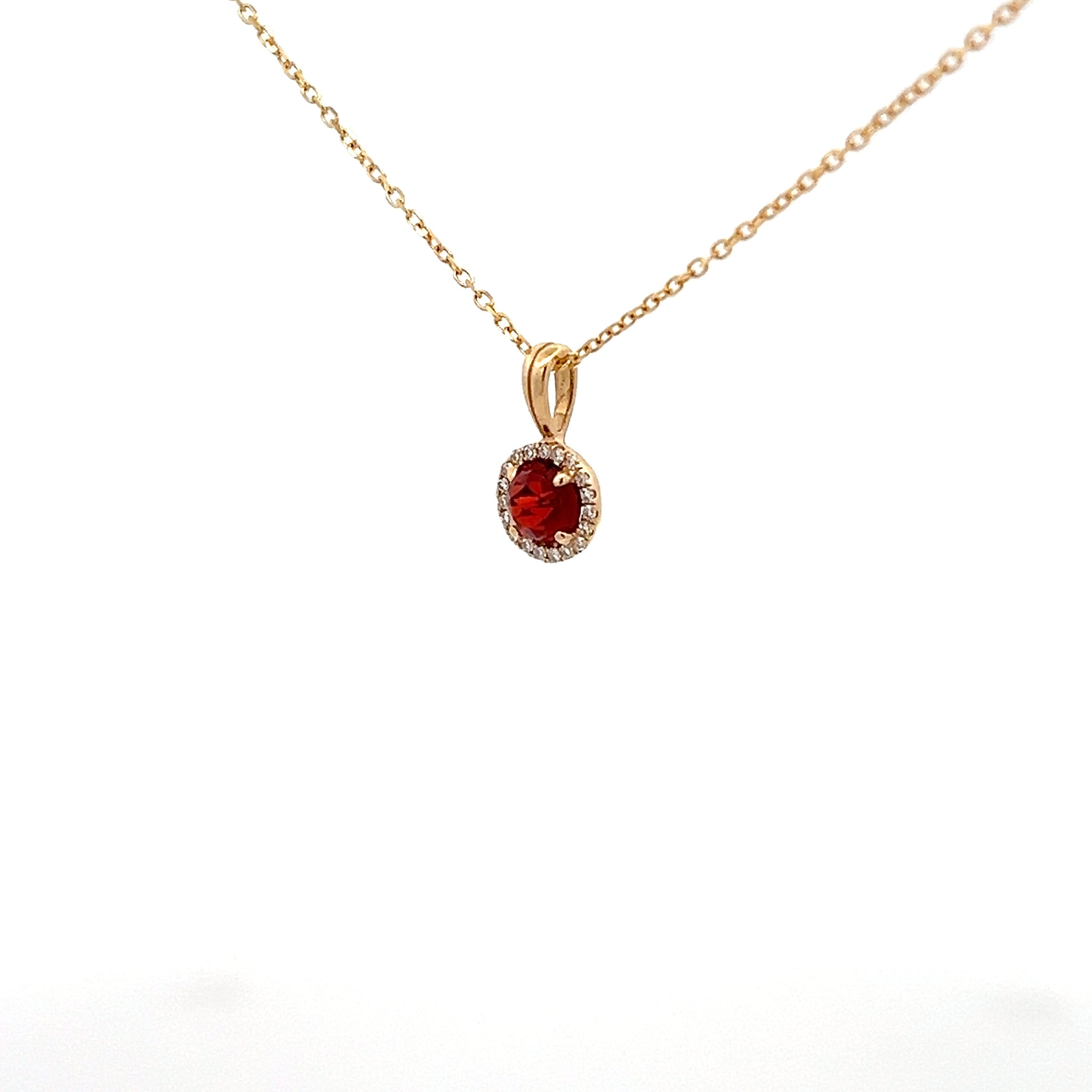 14k Yellow Gold Garnet Birthstone Necklace with Diamond Halo .05ct 18”