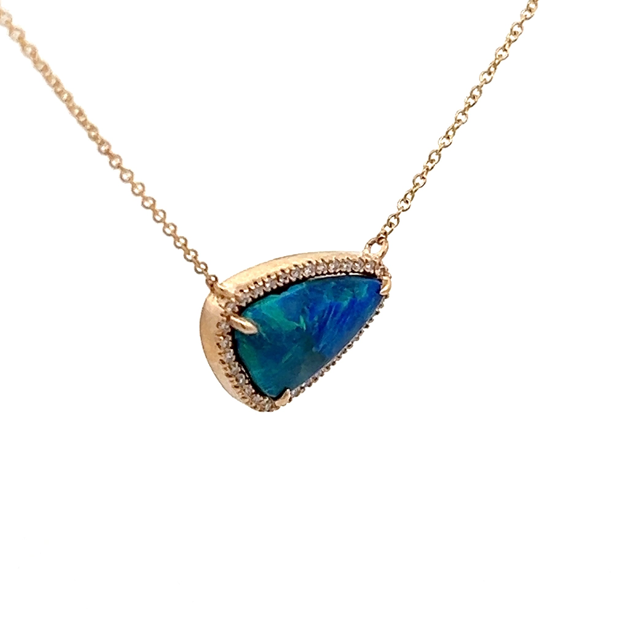 14k Yellow Gold Opal Triplet Necklace with Diamond Halo .15ct 18”