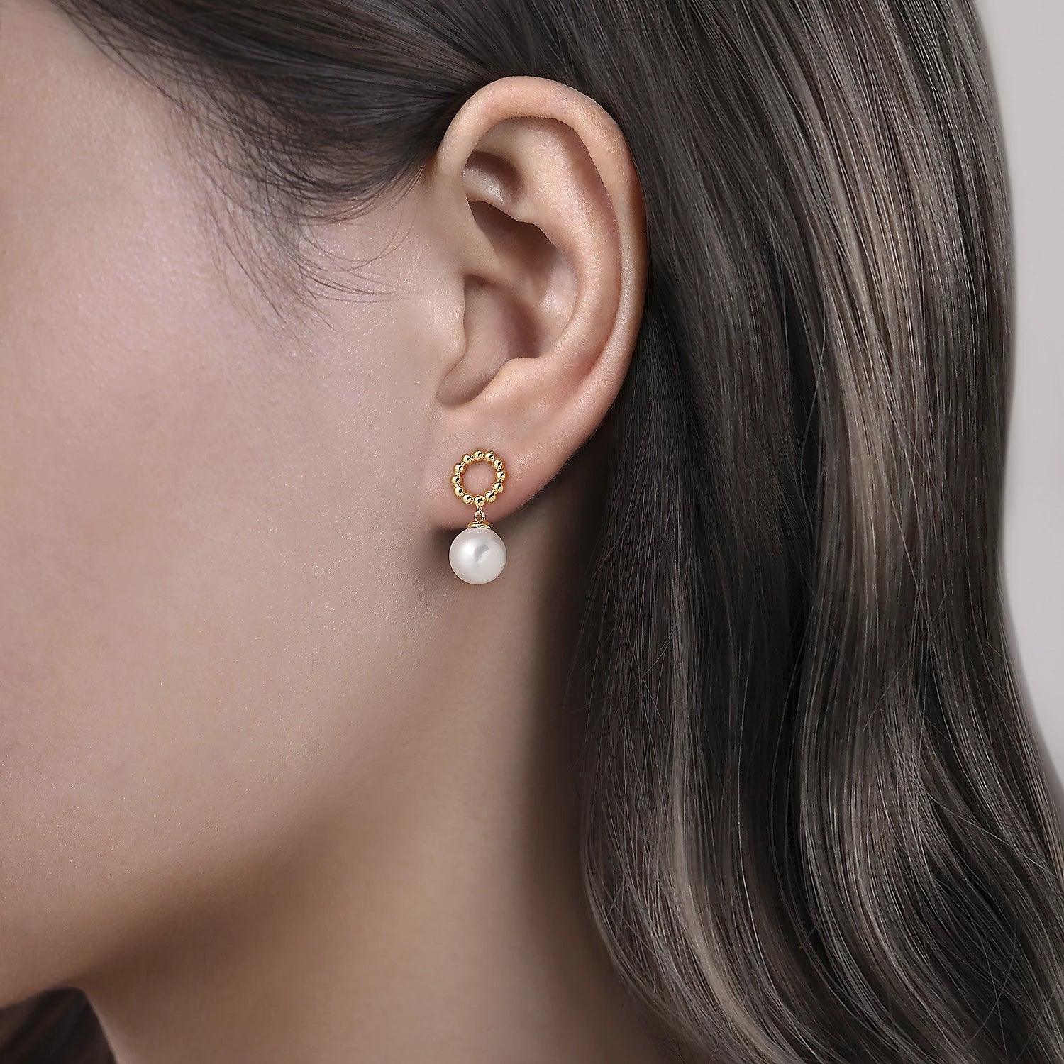 14K Yellow Gold Bujukan Pearl Drop Earrings